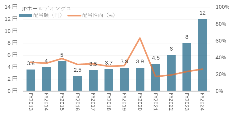 JPホールディングス(2749)の会社概要に加えて配当実績や購入理由に関してご紹介します。